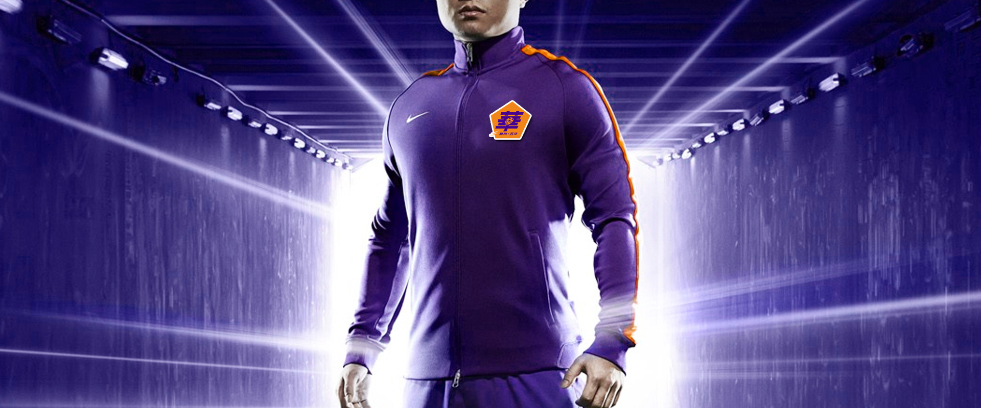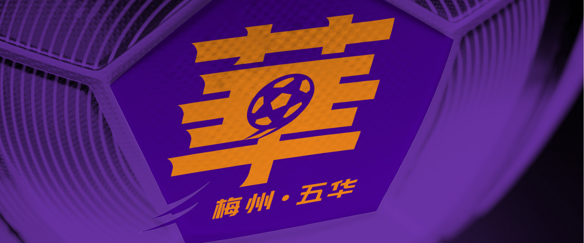 视觉中心的“华”字中心设计一个足球的负形, 寓意球员在每一次比赛中进球直击中心,表现出色、赢得胜利。